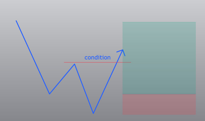 At the first touch of the level, the condition is considered met — the strategy wakes up via the trigger and starts operating according to its logic.