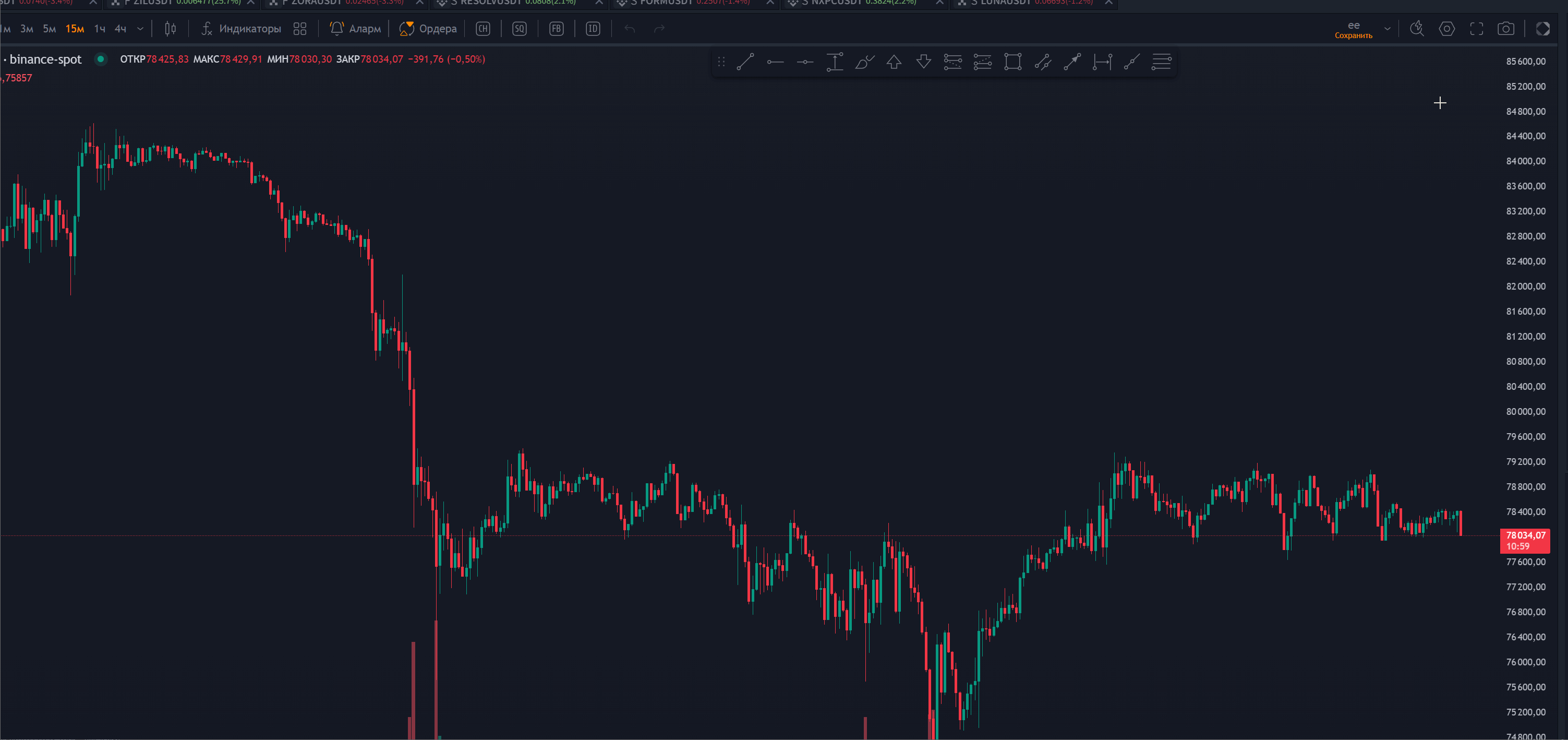 Индикация линии безубытка доступна как для спотовых пар, так и для фьючерсных.